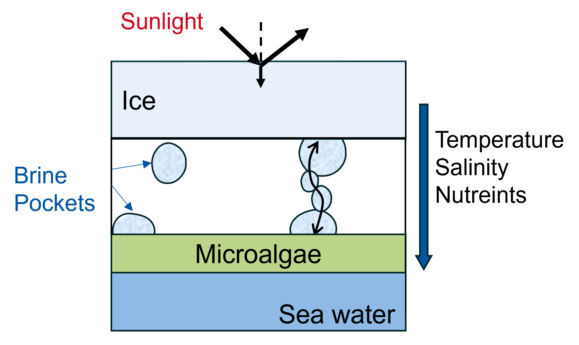 The SPyIce package is a software tool that enables 1D finite difference simulation for vertical transport equations. It specifically focuses on thermal-solute advection-diffusion with the influence of desalination mechanisms and physical properties. The package utilizes the Thomas tridiagonal solver as the solver algorithm. With SPyIce, users can model and analyze the behavior of temperature, salinity, and other relevant variables in a vertical system. It provides a comprehensive framework for studying the thermal diffusion process and its interaction with salinity in various scenarios. Hydra is used to automate the simulation runs of the Sea-Ice Model. It is used to manage and run sea ice simulations, making it easier for users to explore different scenarios and optimize their models. You can also model microalgae bloom near the sea ice-ocean interface and how nutrient transport, sunlight and radiation affects its growth with this package.